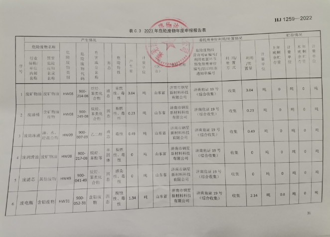 山東泰東實業(yè)有限公司依法公開2023年度危險廢物污染防治信息